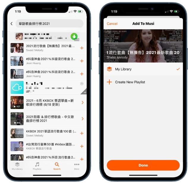 在Musi中,您可以搜尋自己喜歡的歌曲、藝術家,也可以創建屬於自己的播放列表,同時能匯入已經擁有的YouTube播放列表。