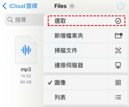 如果您的MP3在檔案應用程式中,您可以利用iCloud雲碟將MP3檔案傳輸到電腦,然後完成iTunes MP3匯入過程。