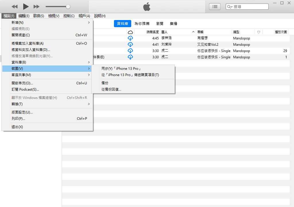 iTunes 將 iPod 音樂傳到 iPhone 的步驟