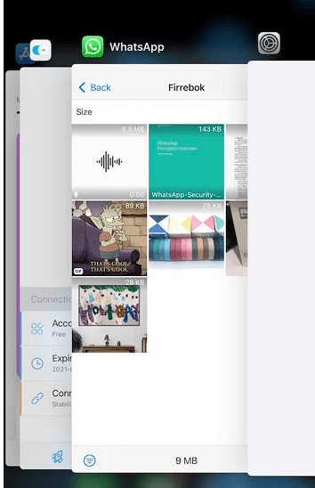 返回 iPhone 的主畫面,從畫面地步向上滑動,找到 WhatsApp 背景 App 並將其滑動關閉。