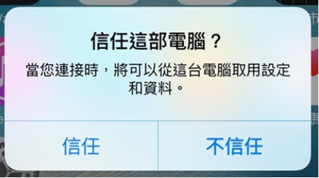 當您首次將 iPhone 14/13/12/11 連入 Windows 10 時,iPhone 會提示詢問您是否信任此電腦,請點擊信任以便電腦可以隨時訪問 iPhone 設定與數據。