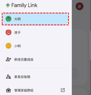 步驟 2. 在「家庭成員名單」下選擇兒童的姓名。