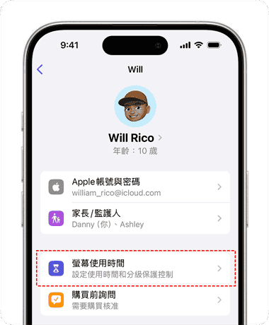 當螢幕使用時間限制設定為「家人共享」和「家長控制」時,您可以在組織者的 iPhone 上關閉此功能。