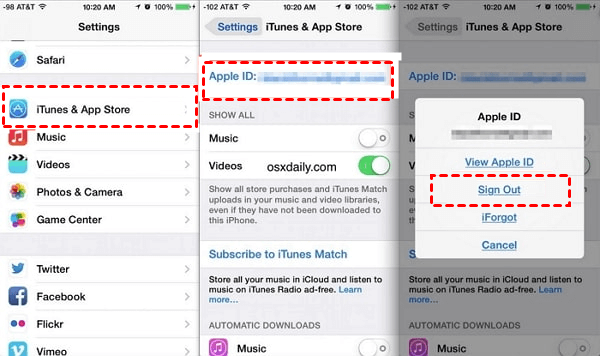 | Sign Out from iTunes & App Store | Easy, without using computer | Suitable when Find My iPhone is disabled |