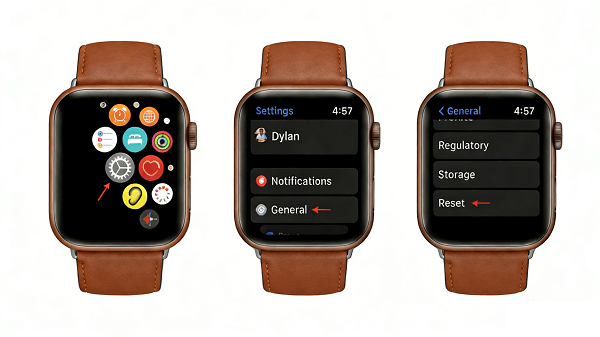 Step 2. On your Apple Watch and go to Settings, tap “General”> “Reset”.