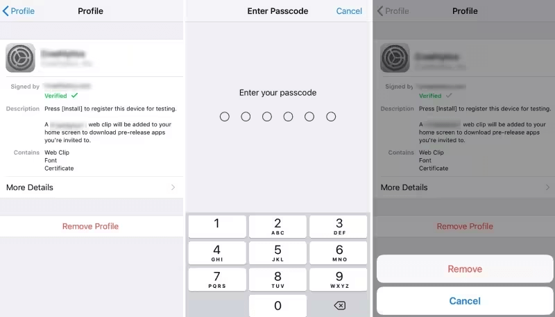 Step 3. Tap on Remove Profile and enter your password if prompted > Remove.