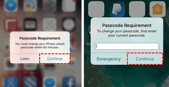 If you keep clicking Later when passcode requirement is prompted, the pop-up will reappear later. But if you don't change your password or fix it constantly, it may result in your iPhone not accepting your passcode and cannot be unlocked.