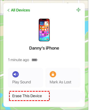 Step 4. Click on Erase This Device to remove your data and settings from your iPhone.